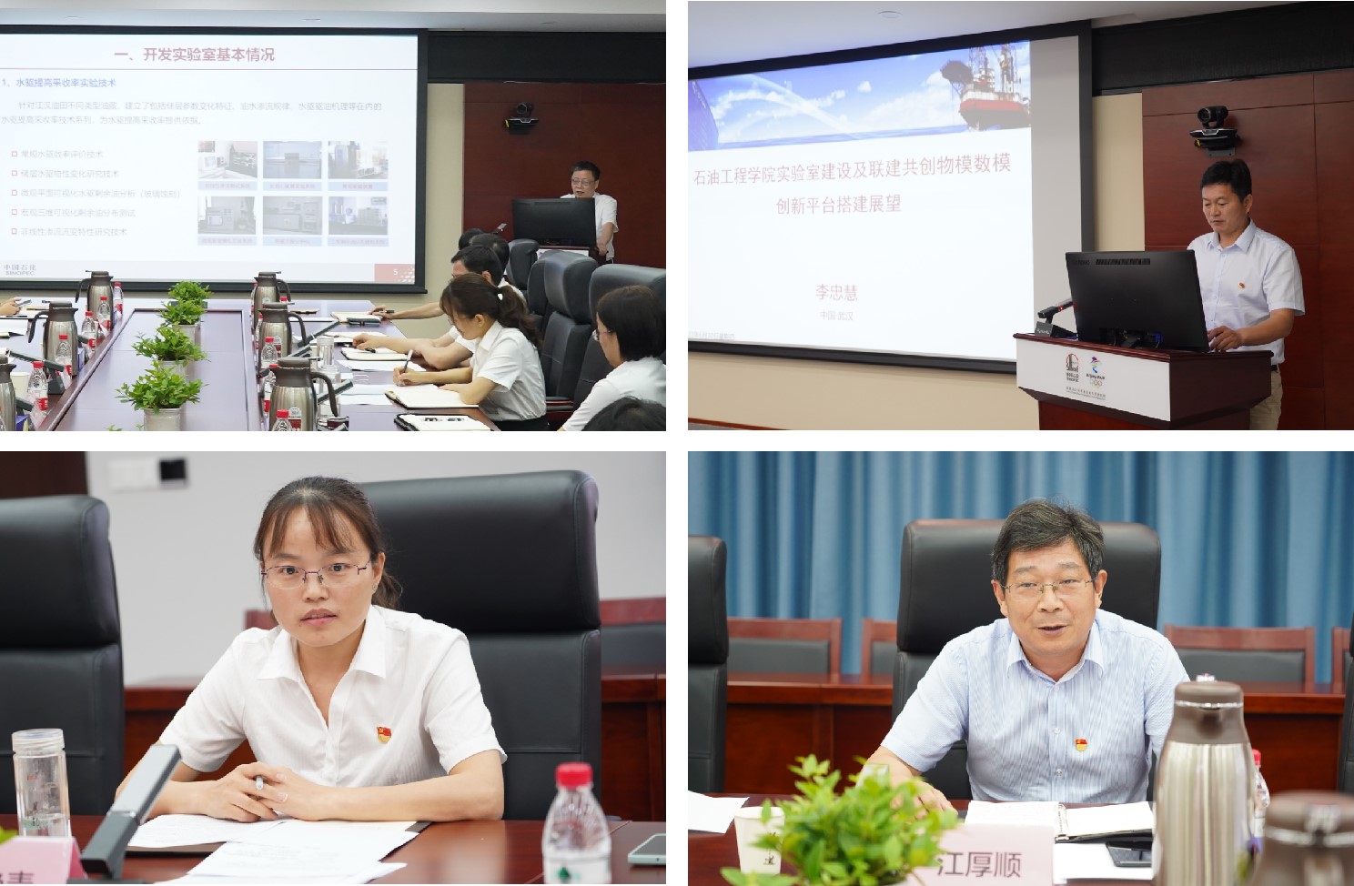 在产学研协同创新平台共建方案研讨会上,油田专家张书平、副经理李忠慧就双方实验室建设现状及展望、项目成果经验等做了交流分享。江厚顺经理、荣焕青副经理对联建共创工作交流进行了总结和部署,他们提出,要借助本次联建共创活动,以党建引领科研,以科研促进党建,在人才培养、平台共建、科技攻关等方面发挥合力,推进党建与业务深度融合。