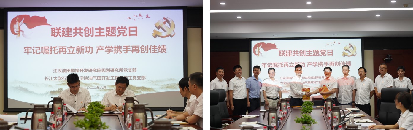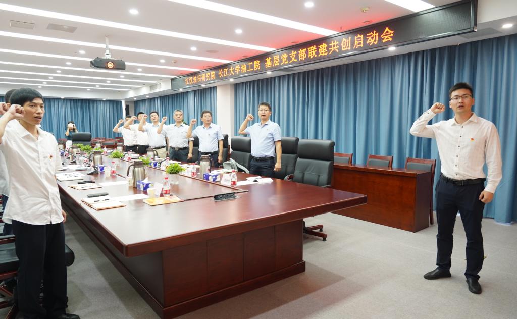 (通讯员 周晓峰)为进一步推进校企结对共建,切实发挥党建引领作用,6月30日上午,betway西汉姆官网油气田开发系教工党支部与江汉油田勘探开发研究院规划研究所党支部联建共创启动会暨“牢记嘱托再立新功 产学携手再创佳绩”支部主题党日活动在江汉油田勘探开发研究院举行。研究公司党委书记胡心玲、副经理荣焕青、院专家、联建支部党员代表,公司党委书记张光明、经理江厚顺、副经理李忠慧、联建支部党员代表等20余名同志参加,研究院规划研究所党支部书记康波主持。