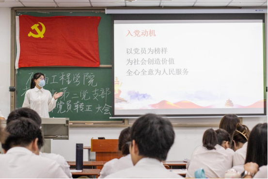 大会伊始,主持人宣读大会纪律后全体起立奏国歌。其后,魏嘉等12名预备党员逐一向党支部汇报了各自在一年预备期和考察期内改正了什么缺点并且为同学、公司、支部和社会做了什么服务。其他党员同志认真倾听后,讨论了该同学的在校表现,并给予了诚恳的建议。之后由该同志进行表态发言,正式党员进行表决。预备党员转正大会的议程进行完毕后,经过全体正式党员的无记名投票,全面通过魏嘉等12位预备党员顺利转为中共正式党员。