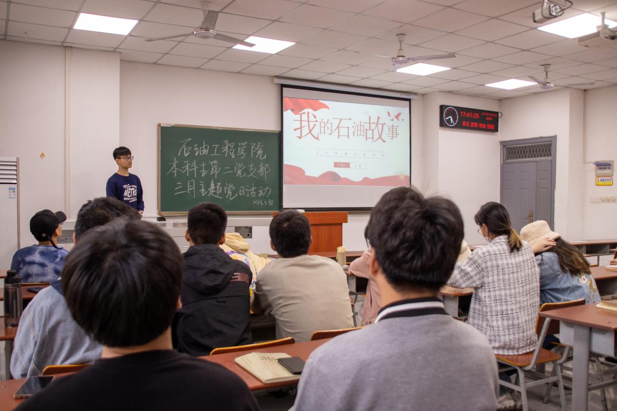 王范同志讲授了以“我的石油故事”为主题的微党课,他以自身研攻“挑战杯”的经历,讲述了当代石油学子以实际行动书写能源报国的青春答卷的故事。