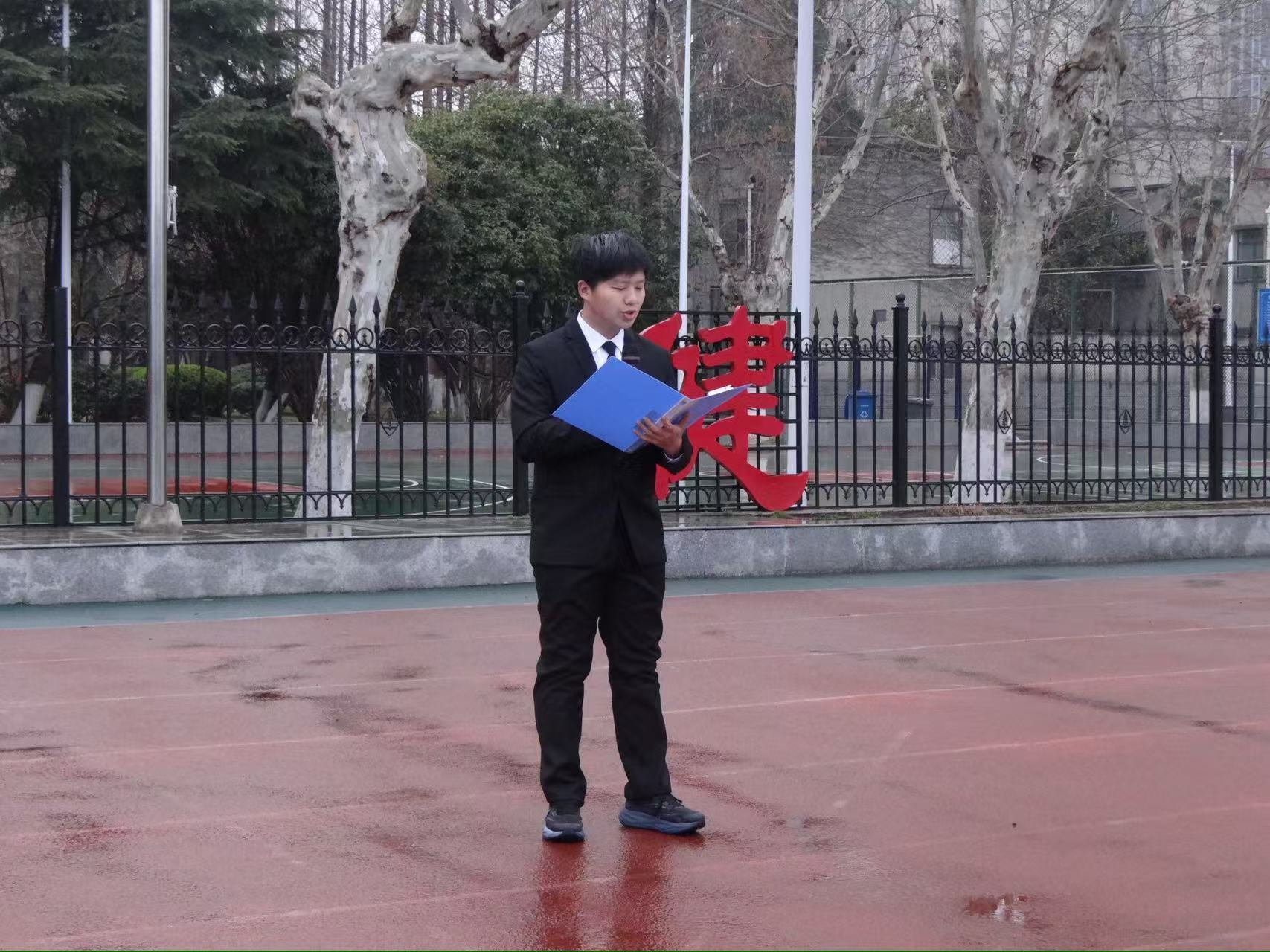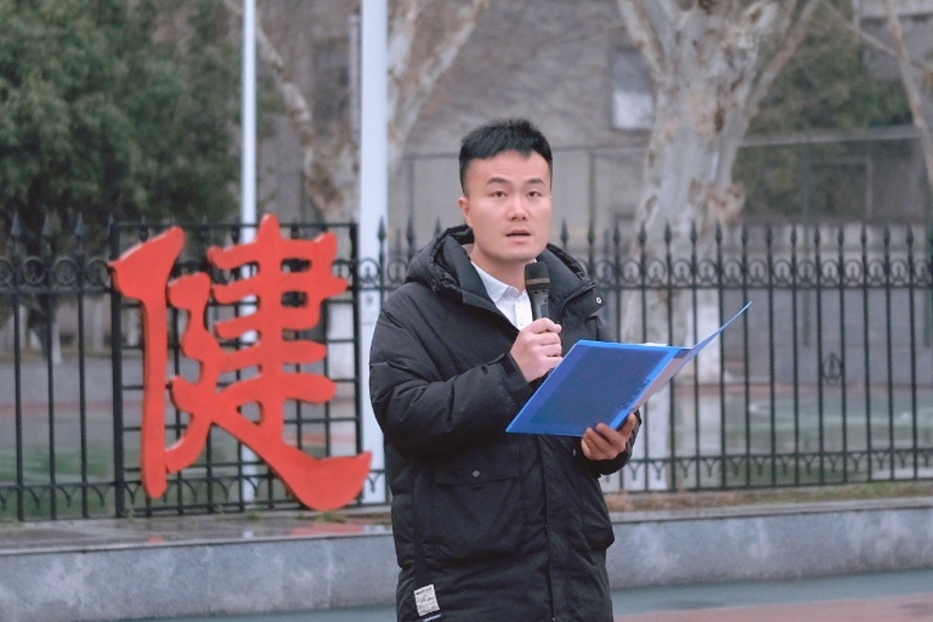辅导员陈金建老师以《擎旗奋进正当时,蓄力启航新征程》为主题发表讲话。从心怀家国、勤学笃行、挺膺担当三个方面对同学们提出了新学期的要求。他勉励同学们在新学期伊始要收心归位,迅速调整状态,以昂扬斗志投入学习生活;要珍惜大学时光,夯实专业基础,在求知路上脚踏实地、行稳致远。他祝愿同学们在新的学期里学有所成、行有所获,用奋斗书写无愧于时代的青春篇章。