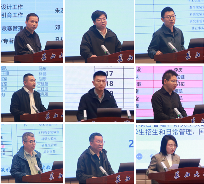 公司领导班子分别就分管工作进行部署安排。常务副经理李忠慧就发展性指标、研究生招生、全国重点实验室等重点工作进行部署,具体介绍了各项工作目标、具体举措和推进计划。副经理张顶学汇报了课程目标达成情况、专业监测评估、本科毕业设计、实习教学、“本硕博贯通培养拔尖创新人才计划”选拔、本科教学实验室建设、专业与课程建设等工作具体安排,副经理郑双进介绍了科研服务、平台建设和员工工作的工作进展和计划,副经理范梅英就财务、实验室空间建设等内容进行工作汇报,副书记张昊介绍了学工团队、安全管理、学风建设、学科竞赛、员工就业等工作情况和部署安排。