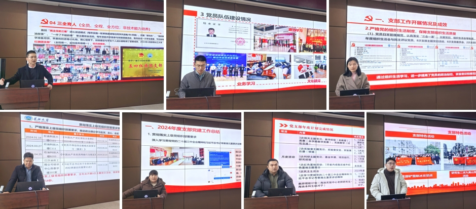 全国党建工作样板支部、油气田开发工程系教工党支部书记许文俊介绍了支部围绕一流团队建设,推动党建业务双融互促、创新探索的方式方法,以及党员教师在指导学科竞赛和三全育人方面取得成效。机关教工党支部书记杨小玉汇报了支部标准化规范化建设和实施“党员示范岗”评选创建品牌活动的实效。油气储运工程系教工党支部书记边江介绍了支部“我为师生办实事”特色活动,并重点展示了党建引领系部业务工作方面的亮点和成果。会上,公司6个教工党支部和员工党支部围绕落实上级党组织部署要求、支部标准化规范化建设、“七个有力”建设、党员队伍建设等方面情况逐一述职,并提出2025年工作思路和计划。