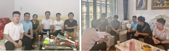 在家访过程中,老师们深入了解了员工的家庭情况,向员工家长简要介绍了员工在校期间的具体表现和学习、生活情况。老师们还从就业、未来规划等方面与同学和家长进行了深入的沟通交流,鼓励员工抓住假期时间,积极参与实践锻炼,及时巩固所学知识,努力提升自身的综合素质和学业水平。在家访时,老师们给员工家庭送去了慰问品,还给家庭经济困难员工专门送上慰问金,代表公司、公司表示关爱。对家长提出的实习安排、奖助政策、就业前景等问题,各位老师一一进行了详细的解答。