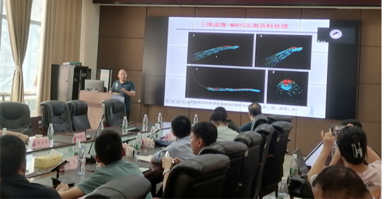 地球物理与石油资源公司刘军锋副教授对《水平井产出剖面流动成像仪器研制、资料解释处理技术》进行了汇报,可以实现三维成像——MAPS实测资料的处理,并开发了系列软件模块,对水平井油水两相产液剖面流动成像进行模型显示,在油田已经实现了推广应用。