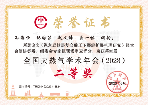 (通讯员 孙海恒)近日,从中国石油学会天然气专业委员会获悉,公司2020级硕士研究生孙海恒(导师:纪国法)在第33届全国天然气学术年会上荣获优秀论文二等奖。