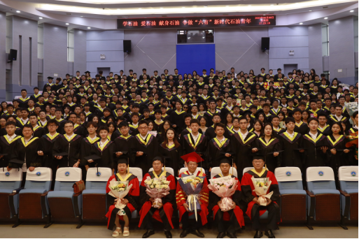 油工21902班田靖彤在毕业典礼上带领公司全体毕业生真情回顾了美好的校园生活,也向母校、向老师、向未来作出庄严承诺:一是明志,要牢记“长大长新”的校训,争做新时代“六有”石油青年;二是实干,要脚踏实地、埋头苦干,用实干开创更加美好的未来;三是有为,要不断在自己的科研和工作领域取得新的成绩;四是感恩,要饮水思源,用优异的成绩回报家庭、母校和社会。