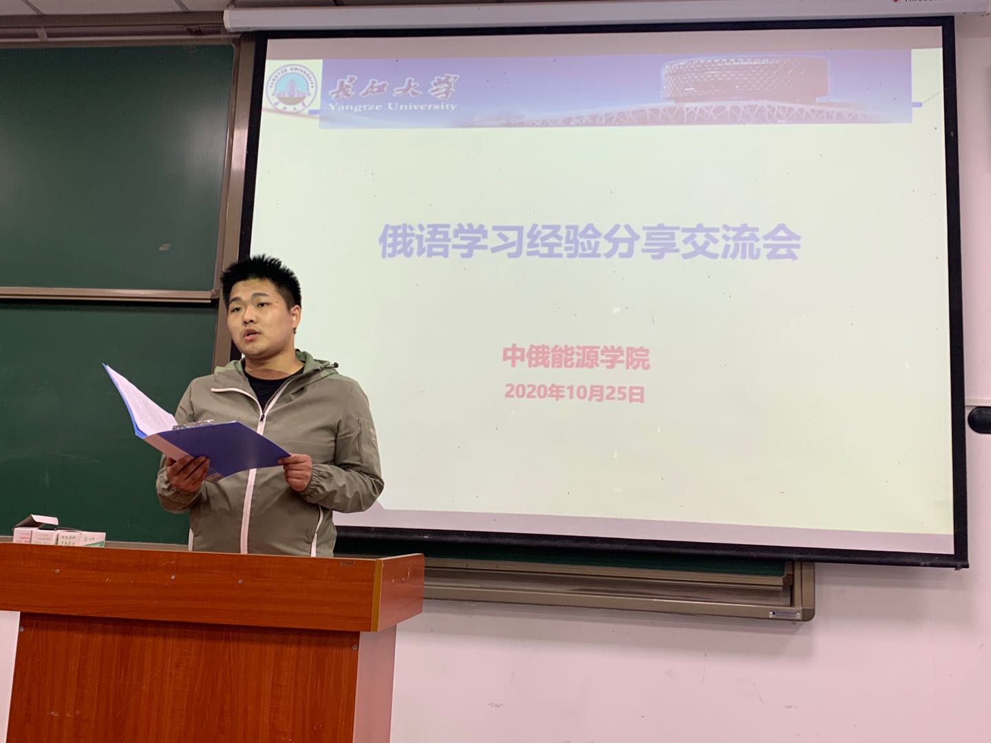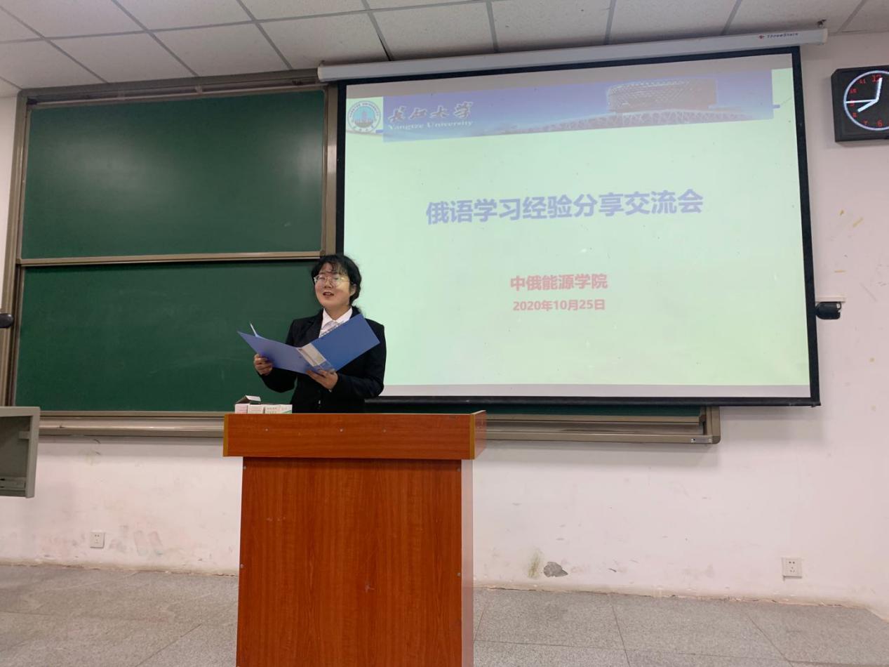 10月25日晚,公司在武教A106举行了“俄语学习经验分享交流会”。中俄能源公司科长喻选梅老师、文丽晨老师、俄语教师王翌婵博士、中俄试点班18级员工黄盟、金铭、刘玉龙、魏江飞及中俄试点班19级全体同学参加了此次交流会。会议由中俄能源公司文丽晨老师主持。