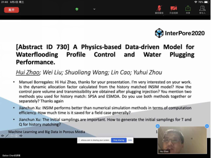 赵辉教授在Interpore2020做大会汇报