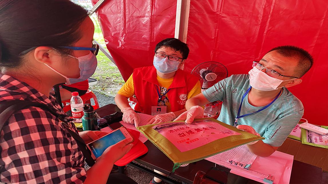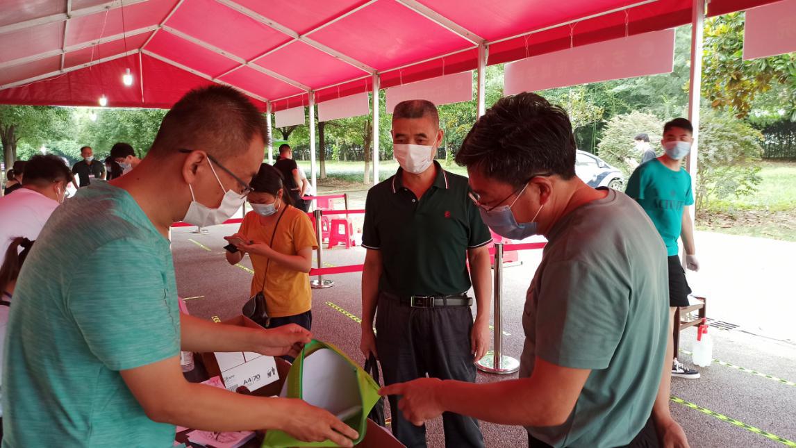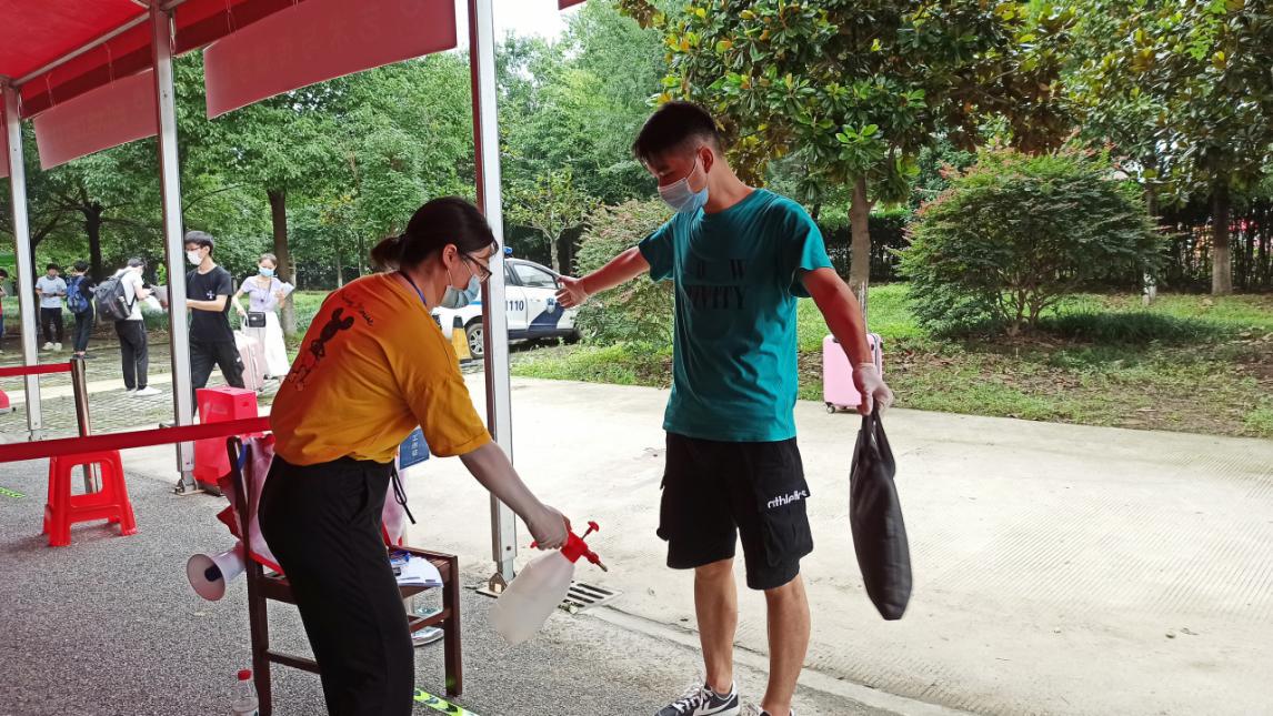 返校的油油们需要通过行李消杀,更换口罩、公司报到,核实信息、医疗保障,核酸检测、门禁测温,进入宿舍等流程,才可以入住公寓。油油们在志愿者和辅导员的引导下,这一切都显得井然有序,有条不紊。油油们在公司报到点还领取返校健康大礼包一个,内容丰富:口罩、餐券、温度计、核酸免费检测卡、手套、免洗洗手液、风油精等,应有尽有。“老师们真是体贴,周到,连夏季防蚊虫叮咬必备神器风油精都有,暖心的不要不要的......”返校毕业生郑春玲从辅导员史永波老师手里接过健康包时激动地说道。