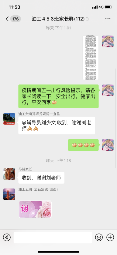 4月26日开始,各班召开“五一假期安全教育班会”,全体班主任、员工线上召开班会,对疫情发展、出行防护、安全返回以及吃住行、盗火水、坛心网、毒艾恐”12个方面进行了详细教育。公司向全体员工发布了《疫情期间五一出行风险提示》,对出行的前期准备、旅途防护、就餐购物和住宿安全等做了详细的提示。同时制定了辅导员-班主任-安全员三级安全体系,全面实时了解员工动向,对于出行的员工进行的填表登记,按照程序填报出行信息和安全健康信息,加强员工在五一以及居家时期的安全保障。