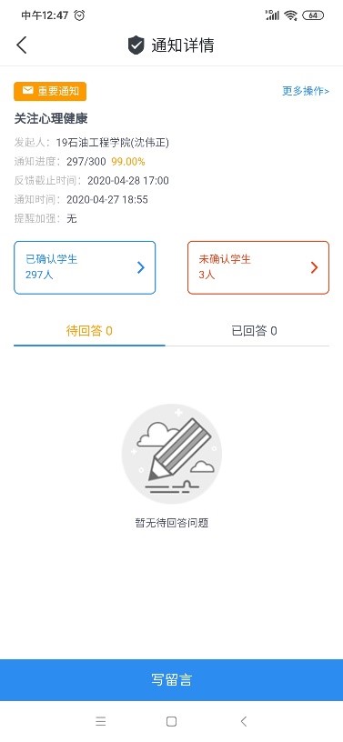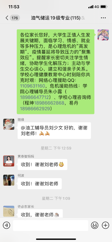 疫情期间,公司推进家校平台的搭建,家校携手保障员工居家安全。各辅导员在家长群、微信公众号平台、各班级群发布《betway西汉姆官网致家长的一封信》,再次提醒家长坚定服从政府在疫情期间的防疫政策,在未得官方通知前,员工不得返校,提醒家长在居家期间要培养良好亲子关系,关注员工身心健康,主动和员工谈心交心,科学理解员工心理情绪,并公开告知家长各年级辅导员联系方式一起公司心理健康教育中心求助方式。公司通过辅导猫以及班级QQ群等形式,对员工开展了心理健康教育工作,鼓励员工科学求助,助力员工在疫情期间化解压力。