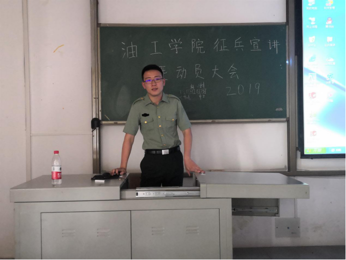 (通讯员 翁成开)依法服兵役是中华人民共和国每一位公民义不容辞的责任和义务。军营是一所培养人才的大公司,是一座锻炼人才的大熔炉。参军报国既是磨砺人生、实现理想抱负的重要途径,更是热爱祖国的高尚行为。2019年5月31日,betway西汉姆官网征兵宣讲暨动员大会在武教B-210进行,学工办梁军老师、史永波老师以及征兵工作宣讲员吴文杰同学、夏铭洋同学到场参加会议。