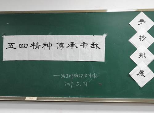 班团支书在本次团会的举办形式上提出了创新——以手抄报展的形式进行,意在让同学们自己去寻找五四相关资料,体悟五四精神,思考自己作为中国青年,今后该怎样传承、发扬五四精神。同时让同学们能够有机会再次拿起画笔,发挥自己的想象力,在进行版面设计时提高创新能力,在团队协作时培养自己的团队意识,增强班级凝聚力。