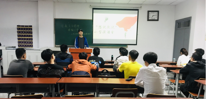 回顾历史,学习五四。活动伊始,由一段讲述五四运动的历史影片带领大家走进那个思潮涌动的时代,感受1919青年学子的赤子之心。随后主讲人为大家介绍五四精神,即忧国忧民、热爱祖国、积极创新、探索科学的爱国主义精神,她还谈到:“爱国主义是五四精神的源泉,传承五四精神让我们身为时代新青年的我们更加懂得思想进步,国家富强的重大历史意义,明白青春的正确打开方式。我们要在和平年代不忘国家使命,在日常学习中积极探索,求实创新,不断进取,肩负起中华民族伟大复兴的时代担当。”