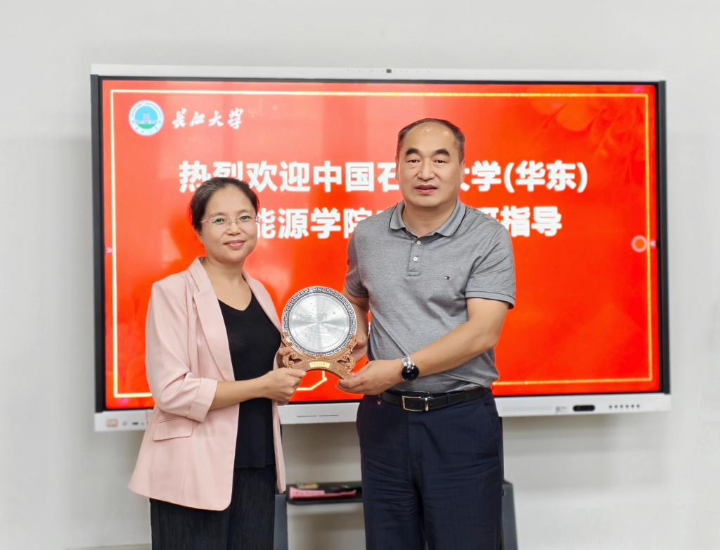 座谈会结束后,陈灵泉书记代表中国石油大学(华东)新能源公司,向公司赠送纪念品。