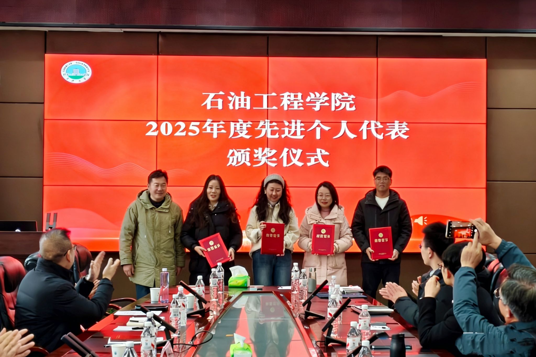 为表彰先进、鼓舞士气,公司对2025年度优秀教职工进行表彰,副经理范梅英宣读了《关于表彰2025年度先进个人的决定》。公司设立公共事务热心奉献奖、教学考核优秀奖、科研考核优秀奖、优秀行政管理人员、优秀实验技术教师、优秀基层党务工作者、优秀教学系基层管理者、优秀所长及优秀教学团队负责人等9个奖项,表彰总人数达93人,让每一份贡献都被铭记,每一份耕耘都获尊重。经理宇波、常务副经理李忠慧为9位先进个人代表颁发荣誉证书。