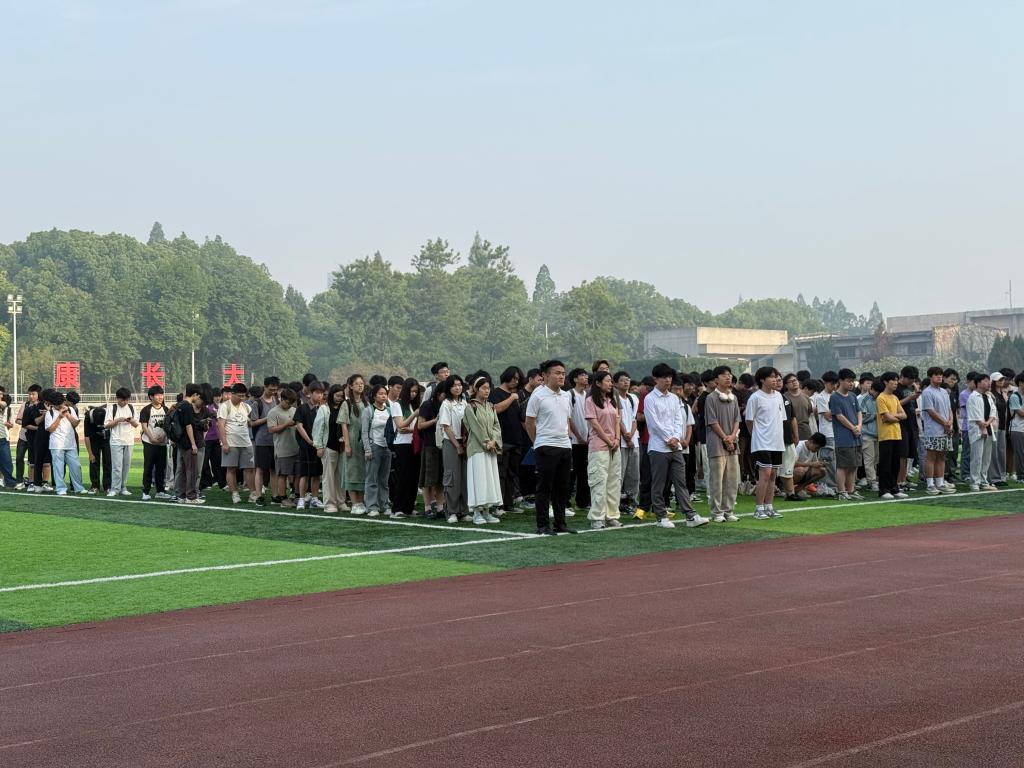 晨光熹微,清风轻柔地拂过面庞。5月19日早上7点,在东校区田径场举行了以“备战四六级,共建优良学风”为主题的升旗仪式。辅导员陈金建老师、兼辅黄梦婷老师、兼辅江千喜老师及24级本科生共同参与。
