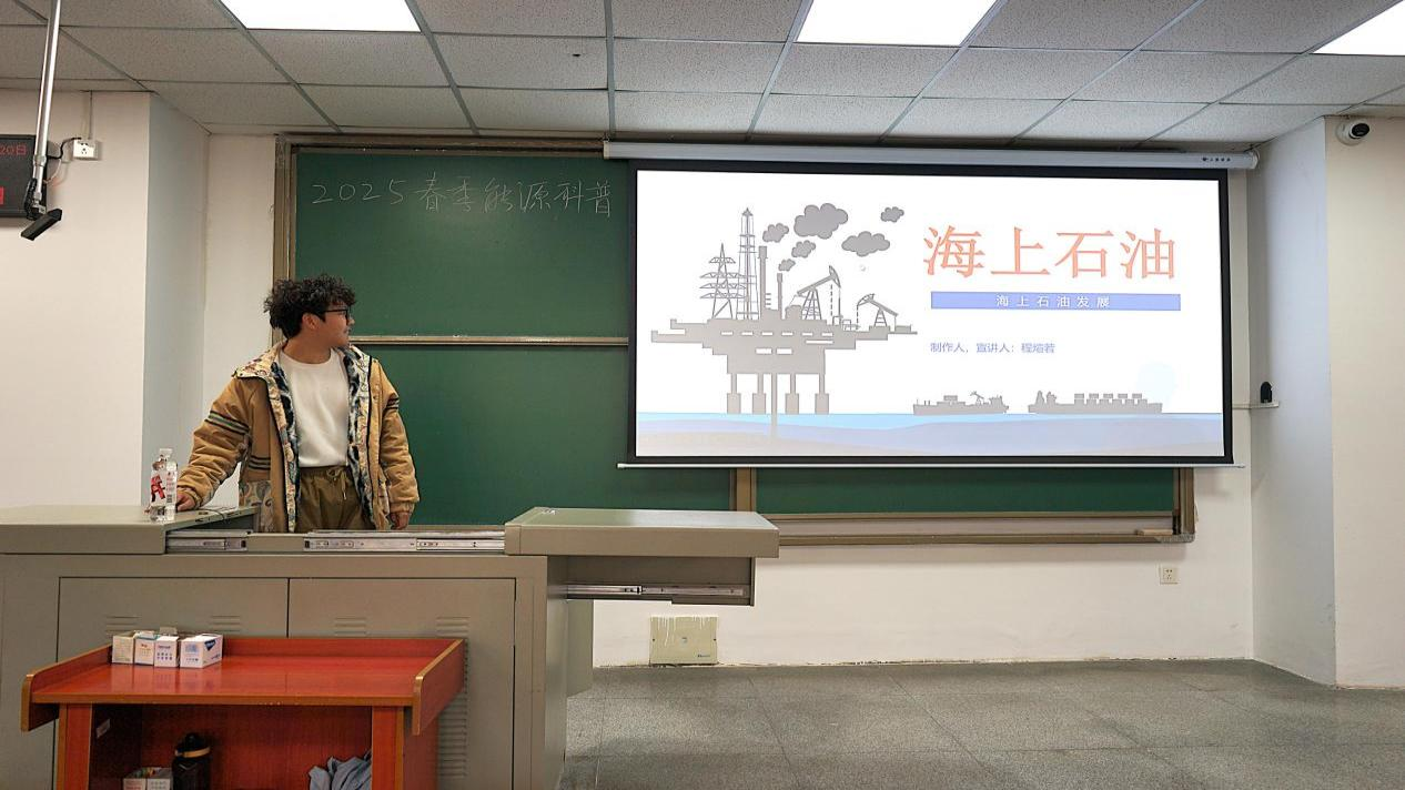 2025年3月20日,betway西汉姆官网黑油能源科普宣讲队在B教108开展了主题为“走向深海——中国海洋油气发展之路”的能源科普宣讲活动。主讲人程煊若围绕我国海洋油气开发的历史、技术突破、未来发展方向等多个方面进行了深入讲解。并结合视频演示环节,展示了海底地震勘探技术、钻井平台运作模式以及海上油气田的实际应用案例。同学们纷纷表示,通过此次宣讲,他们对海洋油气的勘探技术、生产模式以及国家能源安全的重要性有了更深刻的认识,希望未来可以为祖国的油气事业贡献自己的一份力量。