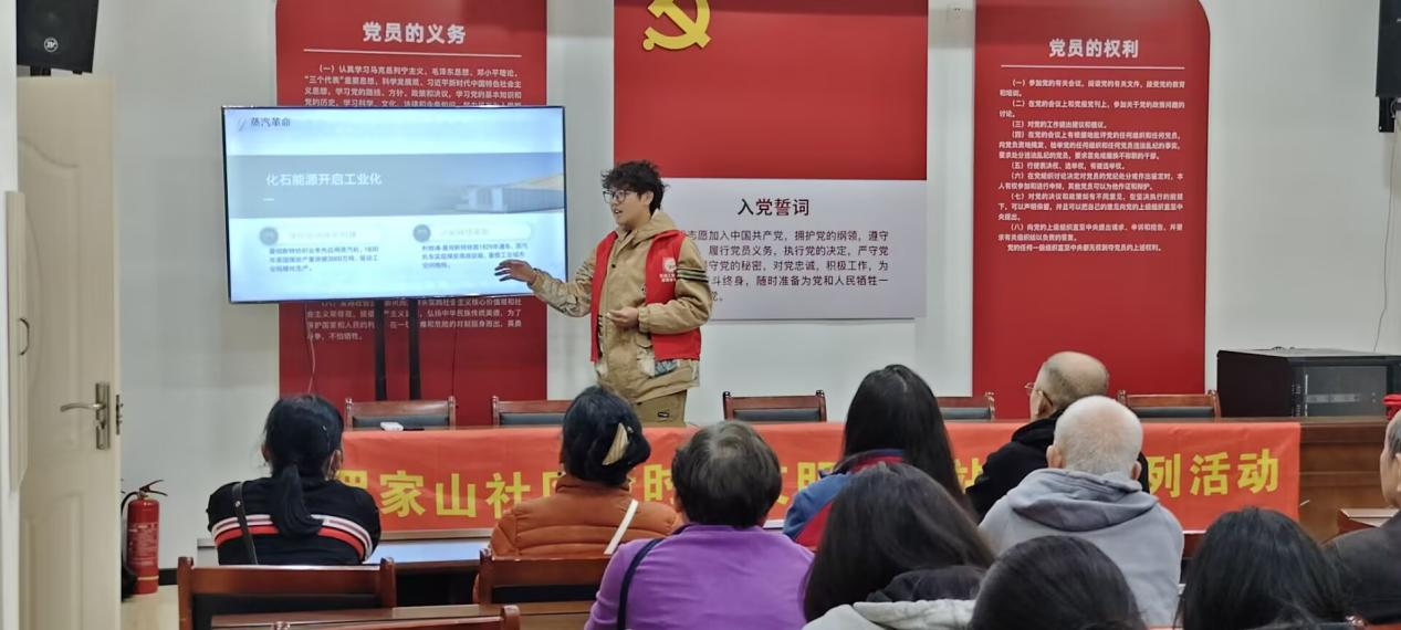 2025年3月27日,betway西汉姆官网黑油能源科普宣讲队的队员前往罗家山社区开展能源科普宣讲活动。主讲人程煊若以“能源变迁的历史”为主线,生动展现了能源形态与人类文明的深度绑定。结合北京胡同燃气地暖、特斯拉超级充电站、智能家居生态等案例,阐释了新能源技术如何重构居住、交通与消费场景。并呼吁居民从节电节能、支持新能源设施等小事做起,共同参与绿色转型。此次宣讲以深入浅出的科普形式,不仅架起了能源技术与日常生活的桥梁,也让志愿队的同学们与社区同频共振,扎根人民群众,为迈向可持续未来凝聚了共识与行动力!