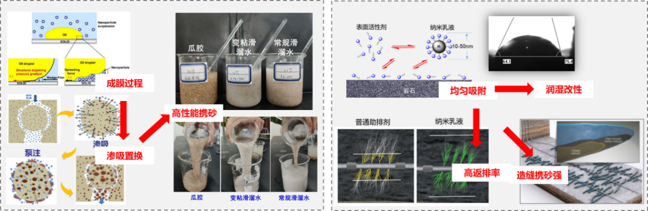 研发CO₂活性体系、多功能纳米材料及耐高温压裂液/酸液,实现了从实验研发到中试验证与现场应用的工程化转化。提出了同井吞吐、异井驱替及压驱渗一体化的非常规油气提产提采新模式,结合立体开发数值模拟技术,显著提升了复杂储层的动用效率与采收率,为非常规油气高质量开发提供了可持续技术支撑。