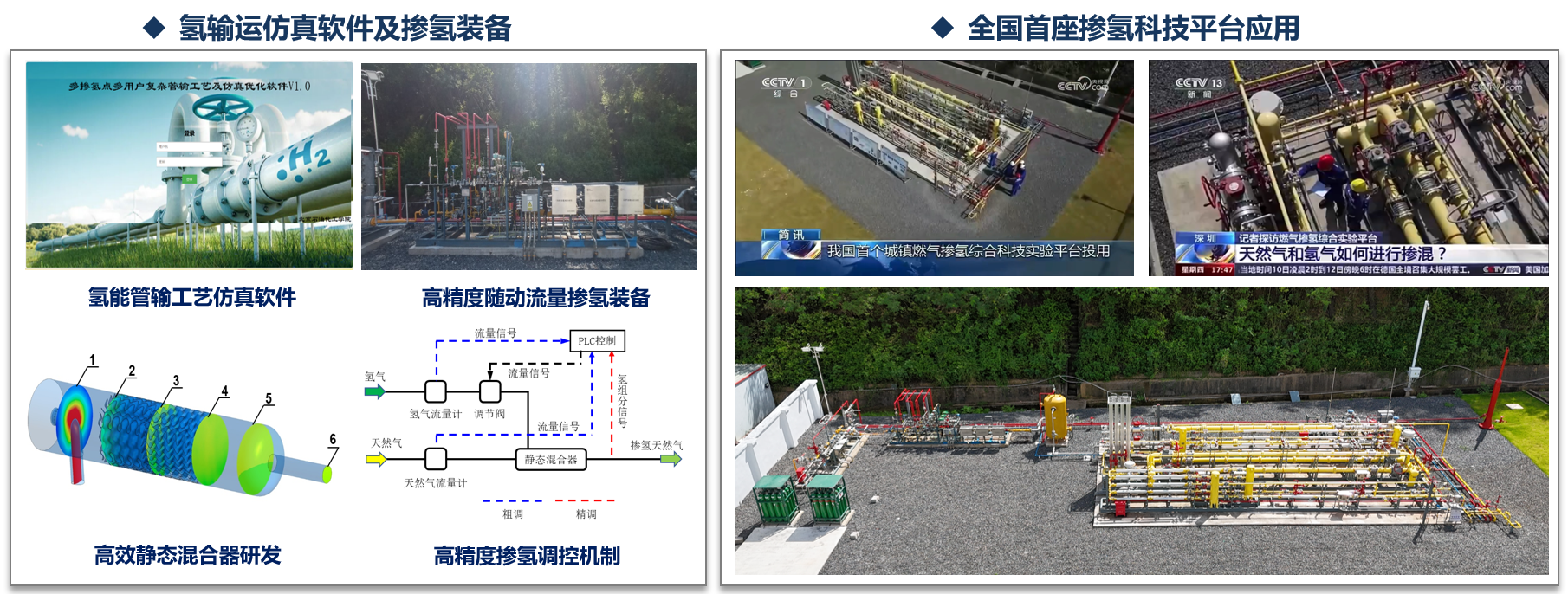 揭示了氢在非金属管材中的渗氢扩散机理,建立了载荷-温度-氢耦合作用下非金属管道的寿命预测模型,提出了氢与非金属管道相容性评价方法。研发了高精度随动流量掺氢设备,在全国首座城镇燃气掺氢综合科技实验平台进行了应用,掺氢比最高达到20%,压力范围覆盖城镇燃气全部压力运行范围,被CCTV1、CCTV13、人民网等媒体报道。