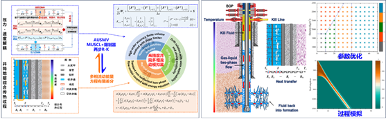提出了井筒多组分多相流动压力-速度联合解耦的高精度数值求解算法,研发了多边界复杂流动通道多相流动瞬态模拟软件,建立了救援井、压回法、置换法、顶部压井、修井压井等非常规压井参数优化设计方法,相关算法模块已集成到中海油“海油云”平台。